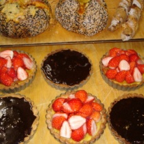 今日の午後の講習は、わずかな時間に「チーズとクランベリーのバトン」「Wチーズごまブレッド」「フルーツタルト」「タルト・オ・ショコラ」と盛りだくさん。チーズ通のお二人のためのメニューは、いろいろな種類のチーズをいれたので、とっても喜んでいただけた。初対面でも ...
