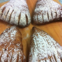 砂糖も油脂も入らない、塩とイーストだけで作る。まわりに黒ゴマを付けて、さつま芋風味を強調した。米粉だけなのでボリュームを心配したが、全員資格取得者の先生たちだったので、さすがにすばらしい米カンパーニュができた。このパンは発酵をとらず、2次発酵も焼成時間も小 ...