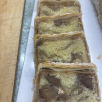 今日はテリーヌ4回目という皆さんたちのレッスンをさせていただいた。このようにおいしいケーキは他で売っていないと、言っていただいた。一度マロンケーキを焼いてから更にパイに包んで焼くという、とても贅沢なケーキだ。初めて参加の方もハマりそうと喜んでくださった。 ...
